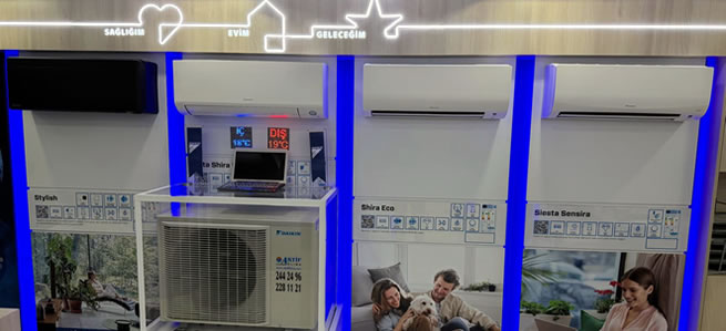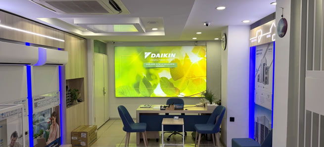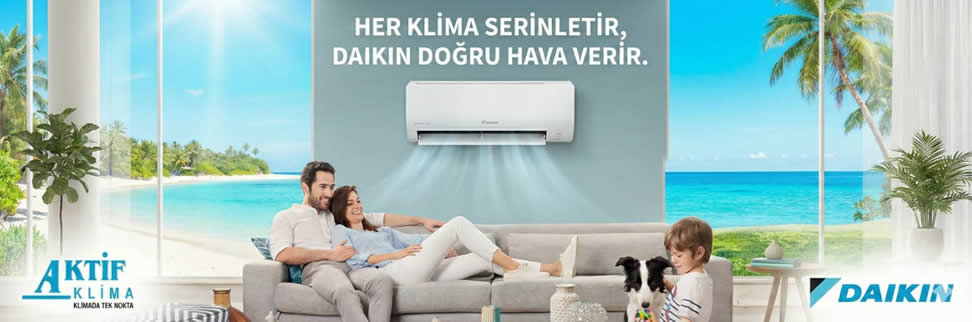 Aktif Klima Antalya'da Daikin split klimalar, Daikin multi split klimalar, Daikin ticari klimalar, Daikin küçük ticari tip klimalar, Daikin hava temizleme cihazları, Daikin Kombi, Daikin alterma havadan suya ısı pompası, VRV sistem çeşitli modellerinden duvar tipi split klima, dört yöne üflemeli kaset tipi klima, salon tipi klima, tavan tipi klima, kanallı tip merkezi sistem profesyonel klima cihazlarıyla; geniş ürün yelpazesi modellerinin satış, servis hizmetlerini başarıyla sürdürmektedir.